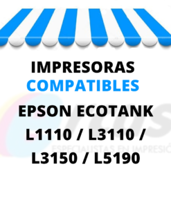 | IMPRESORAS COMPATIBLES | EPSON ECOTANK L1110, L3110, L3150, L5190. |
